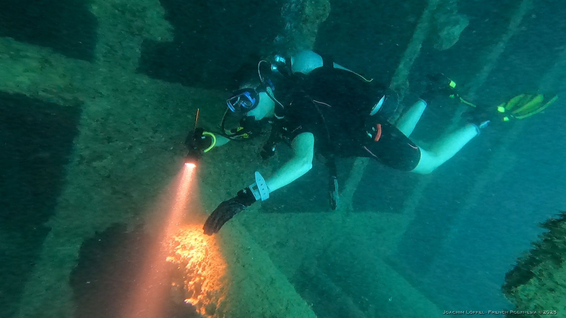 Diving the Nordby Wreck on Raiatea / French Polynesia. The Nordby was a splendid 60 meter long three-masted, which sank on August 22nd, 1900 and is the only ship wreck in Raiatea.